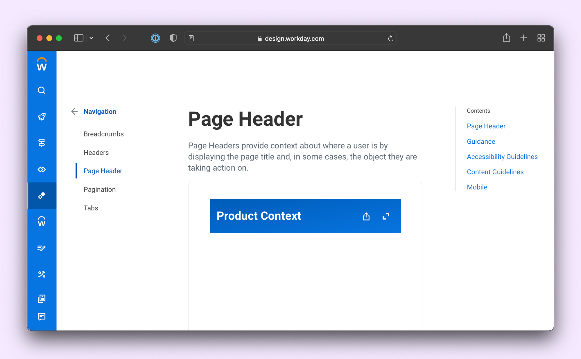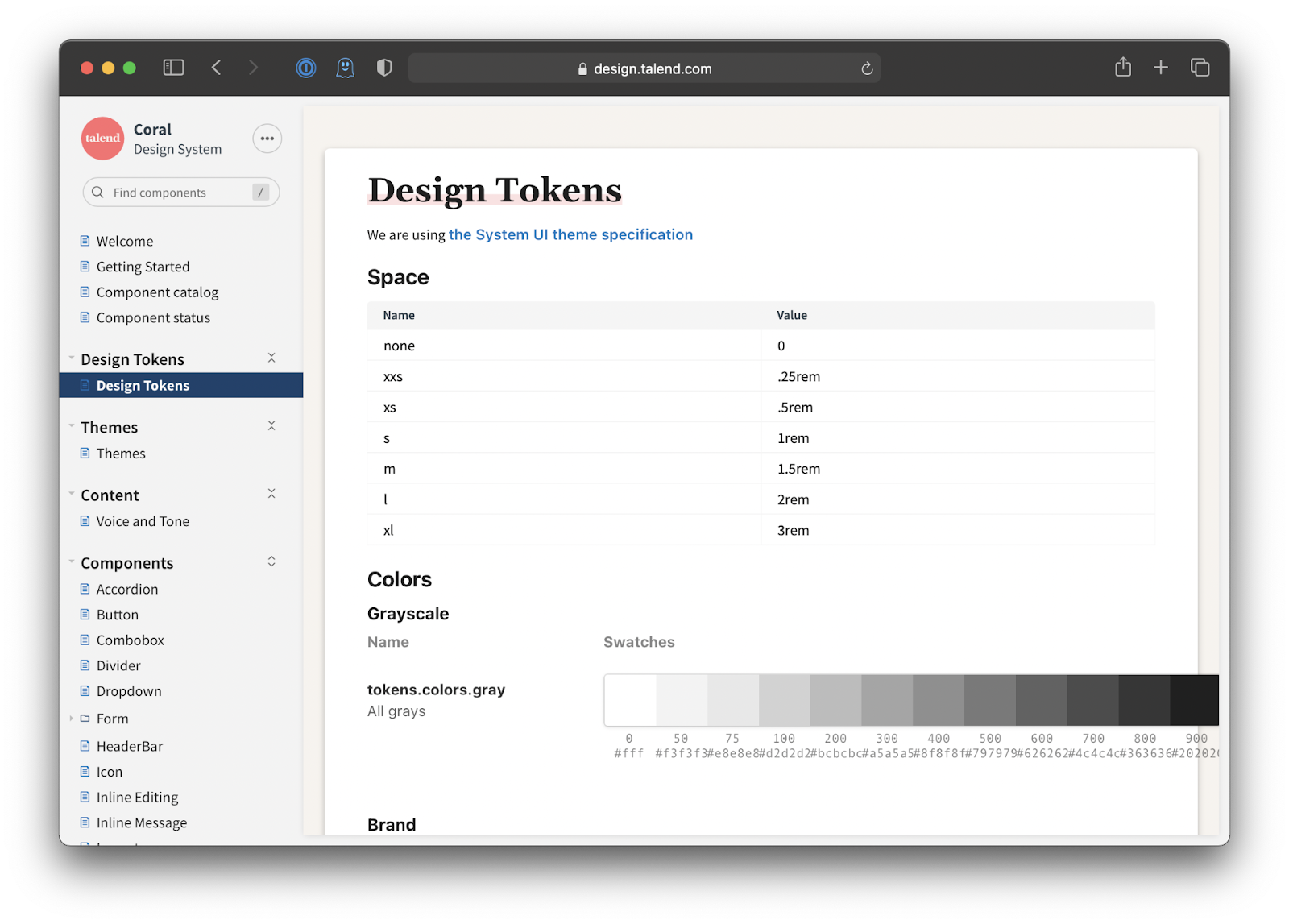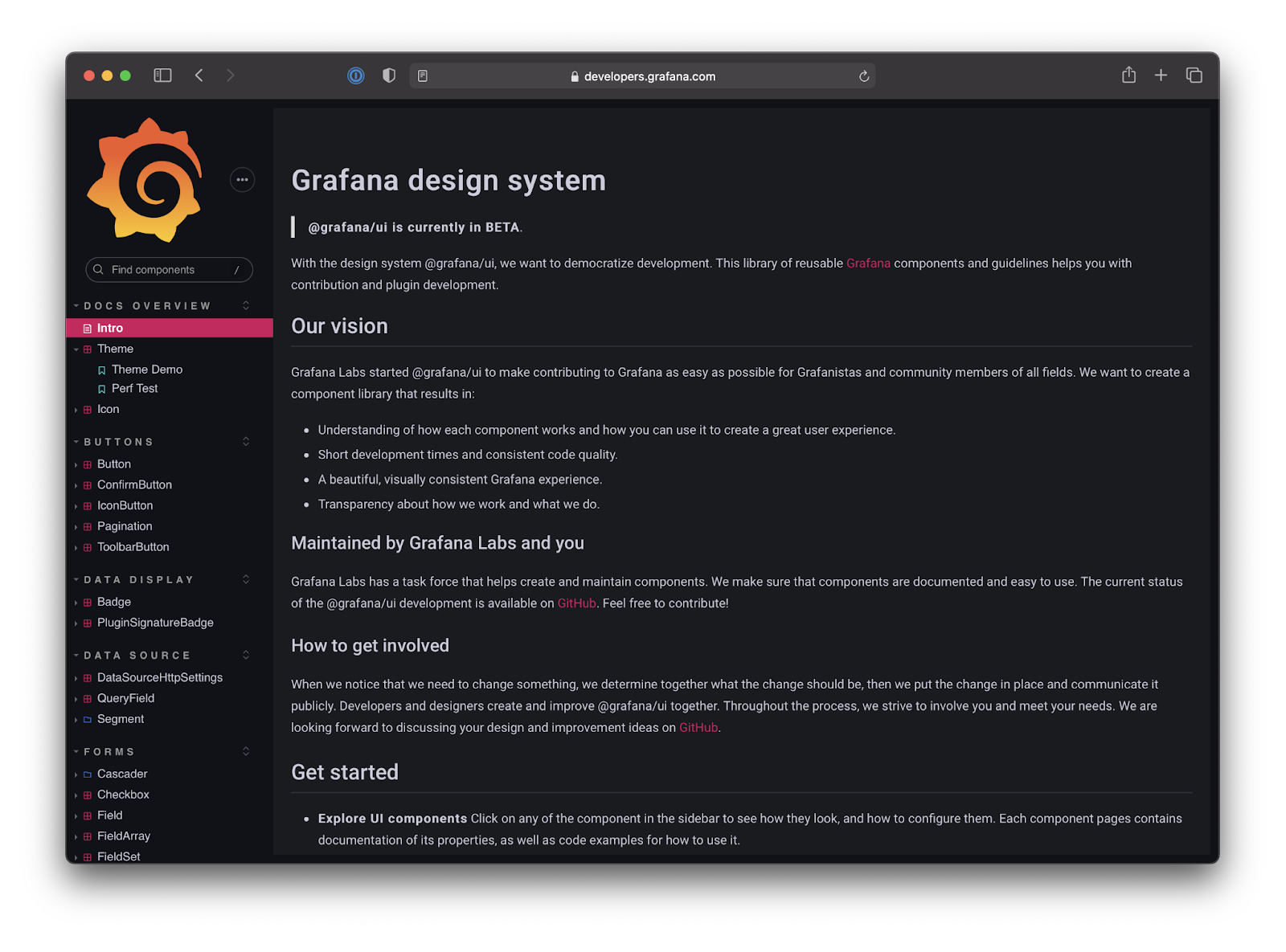 - Usage guidelines: generated from Markdown. You can add prose to any part of the page and provide more context.