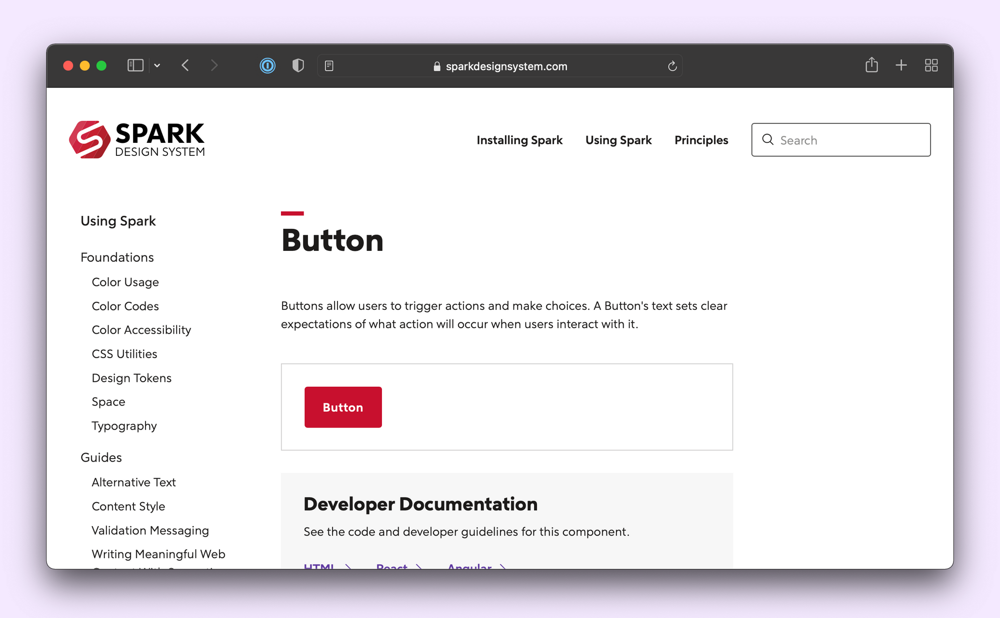 Adoption is the biggest challenge for any design system. Good documentation accelerates adoption by serving as a centralized source of truth for all your users. Covering guidelines on how to use the design system and detailed documentation for each component.