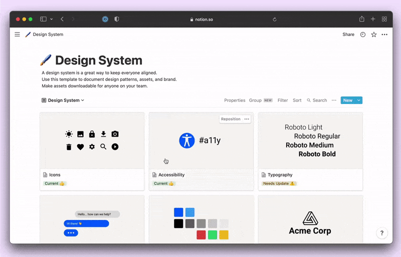 Notion and Confluence are general-purpose documentation tools with a WYSIWYG editing interface. That helps you involve non-technical contributors and embed assets alongside prose. Notion even provides a design system starter template.