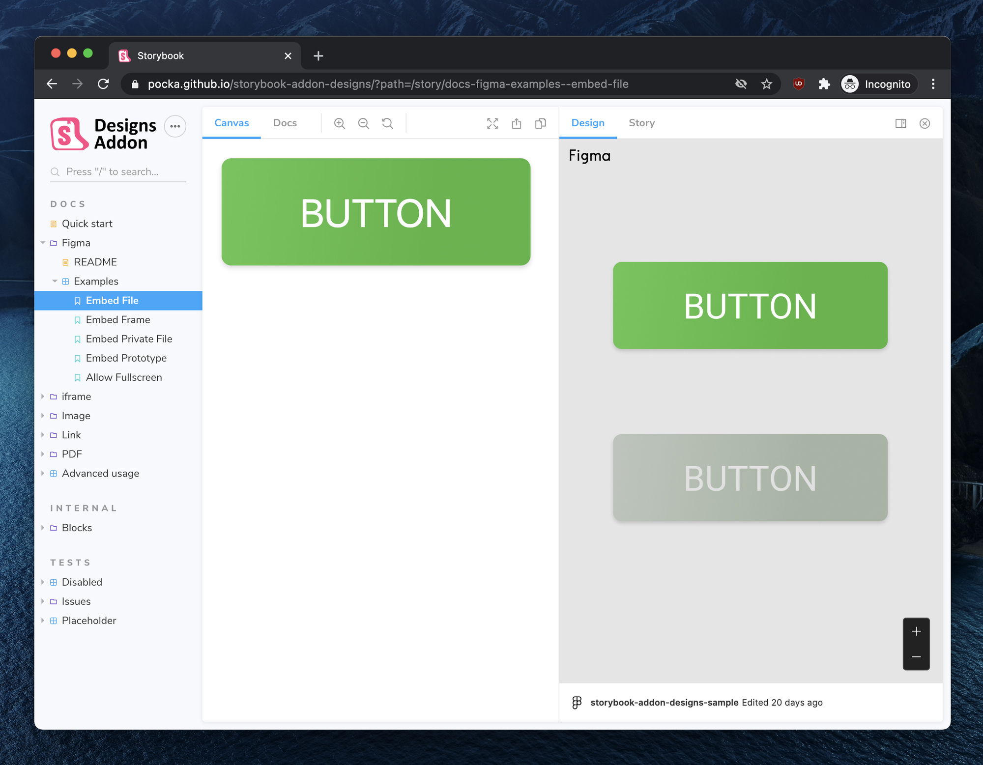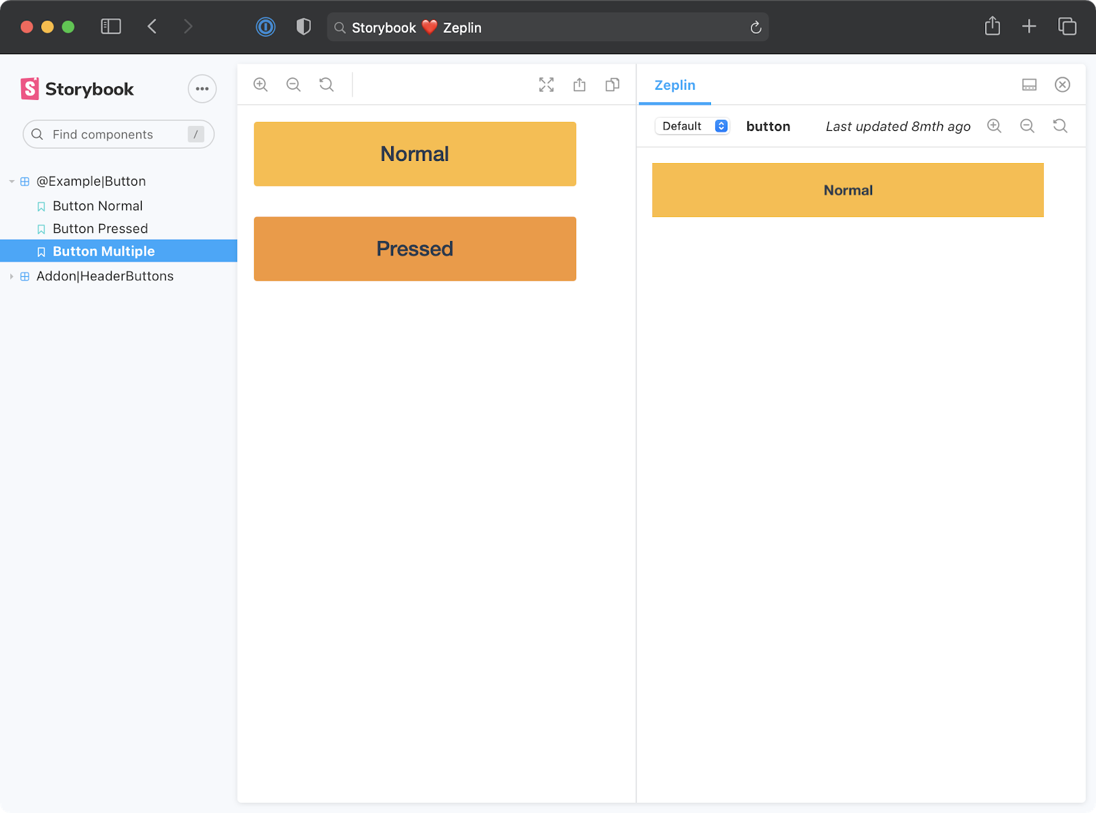 Figma is a collaborative UI design tool that enables multiple people to design simultaneously in the browser. The Figma addon depicts the component design next to the implementation. Design changes are instantly updated in Storybook.