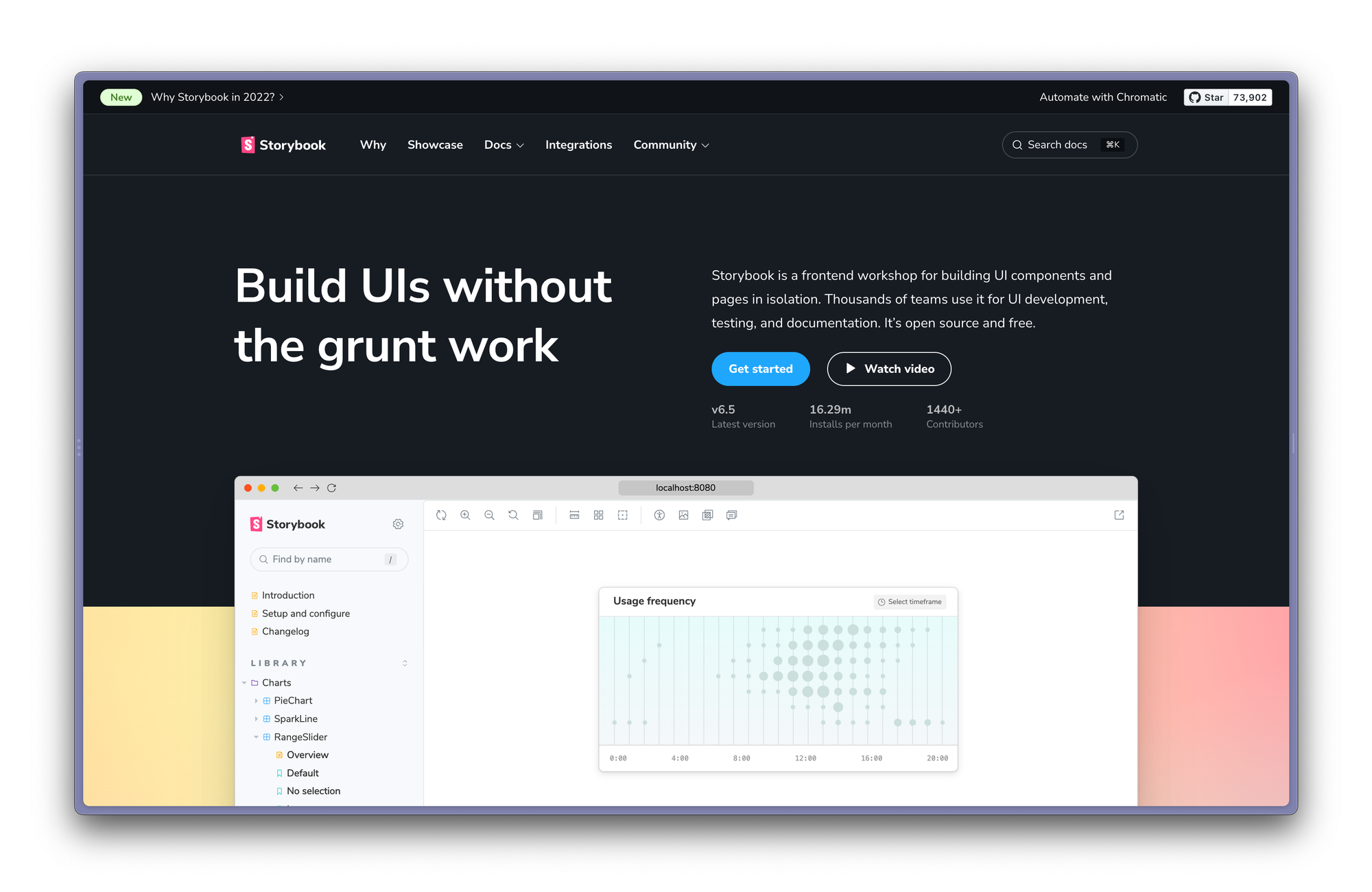 I am excited to announce the launch of the new Storybook homepage. It's packed with animations and demos to showcase all capabilities of Storybook. We've also streamlined the navigation to make finding what you’re looking for easier and you can now search docs from any page.