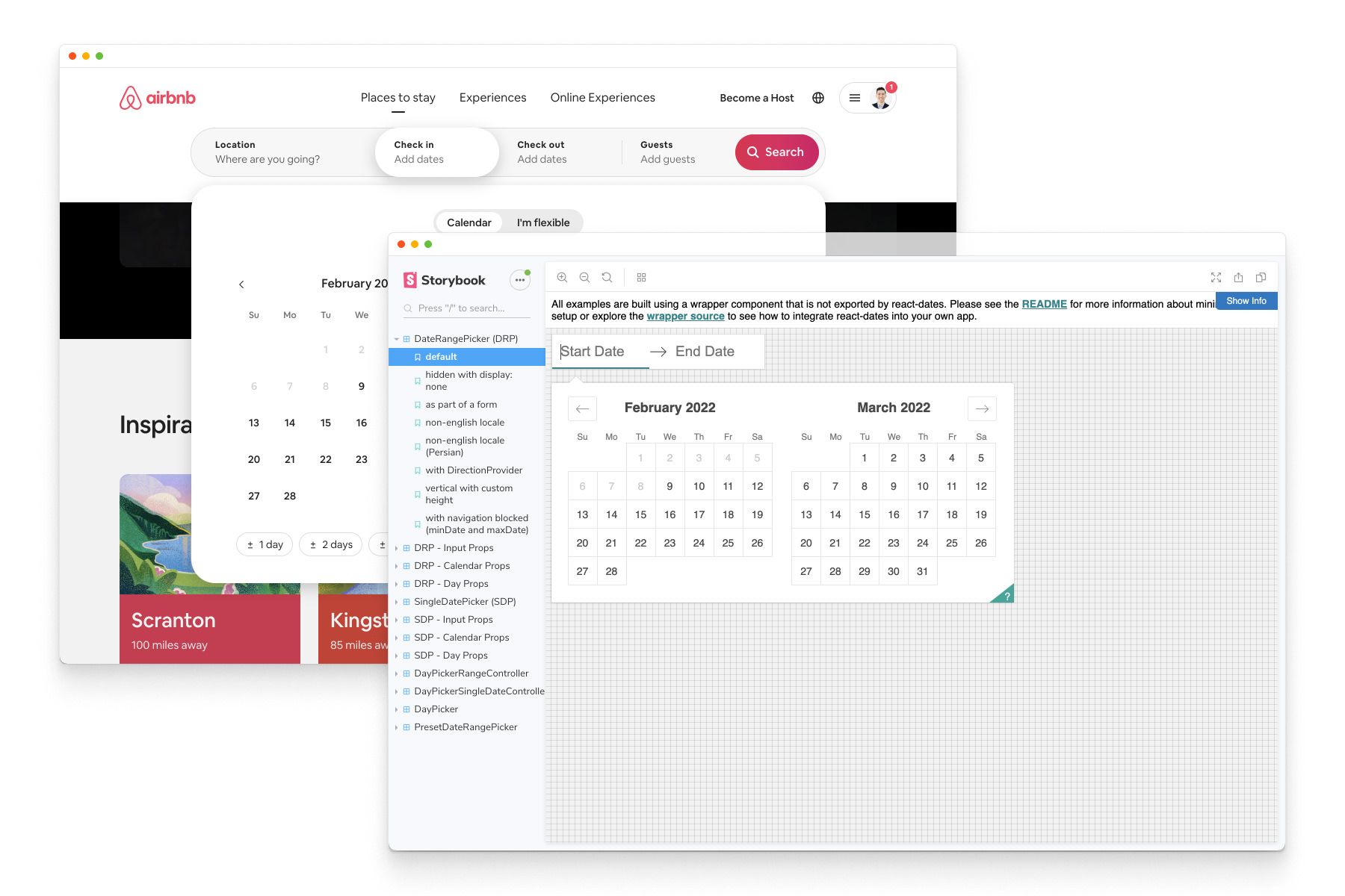 Imagine building a DatePicker that 500 million guests use to find accommodations. Airbnb devotes a whole Storybook to mapping out the key states of their open source react-dates library.