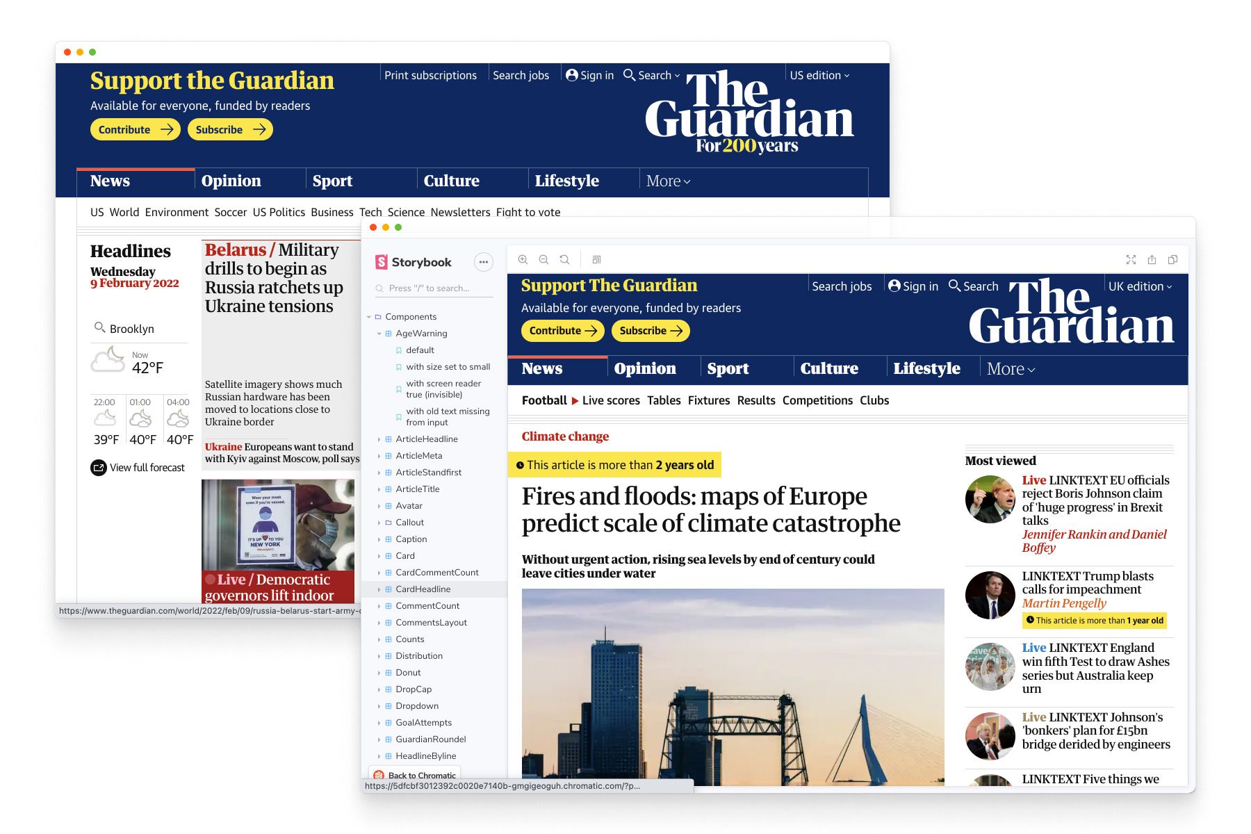 The Guardian is one of the most trusted newspapers in the United Kingdom. It covers a broad variety of topics. To provide the best reading experience, The Guardian’s page layouts need to be resilient to every content type yet remain customizable. Storybook is used to build the entire UI, from component to page, in isolation from the content management system.
