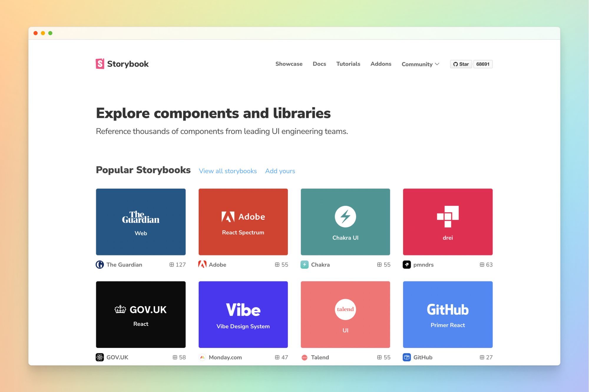 Gov.uk is the digital portal for every ministerial department in the United Kingdom. They maintain a high user interface standard using a design system made with Storybook. Any developer on any team can find and reuse existing work.