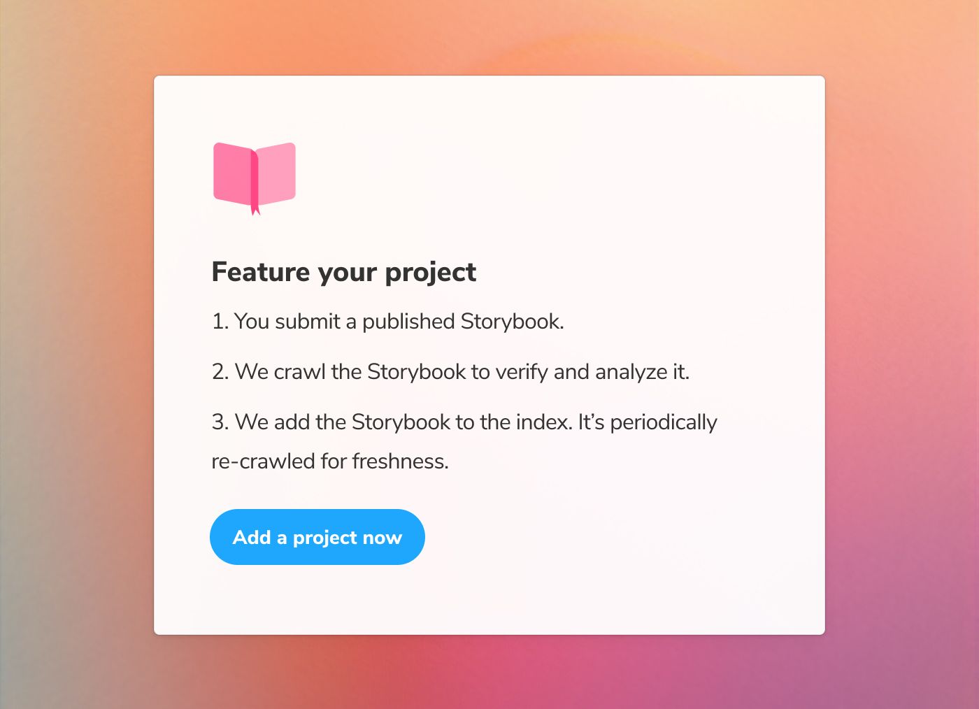 Join us in Storybook’s Discord chat #showcase. We welcome contributions from new developers and veterans alike, especially when it comes to adding to the index.
