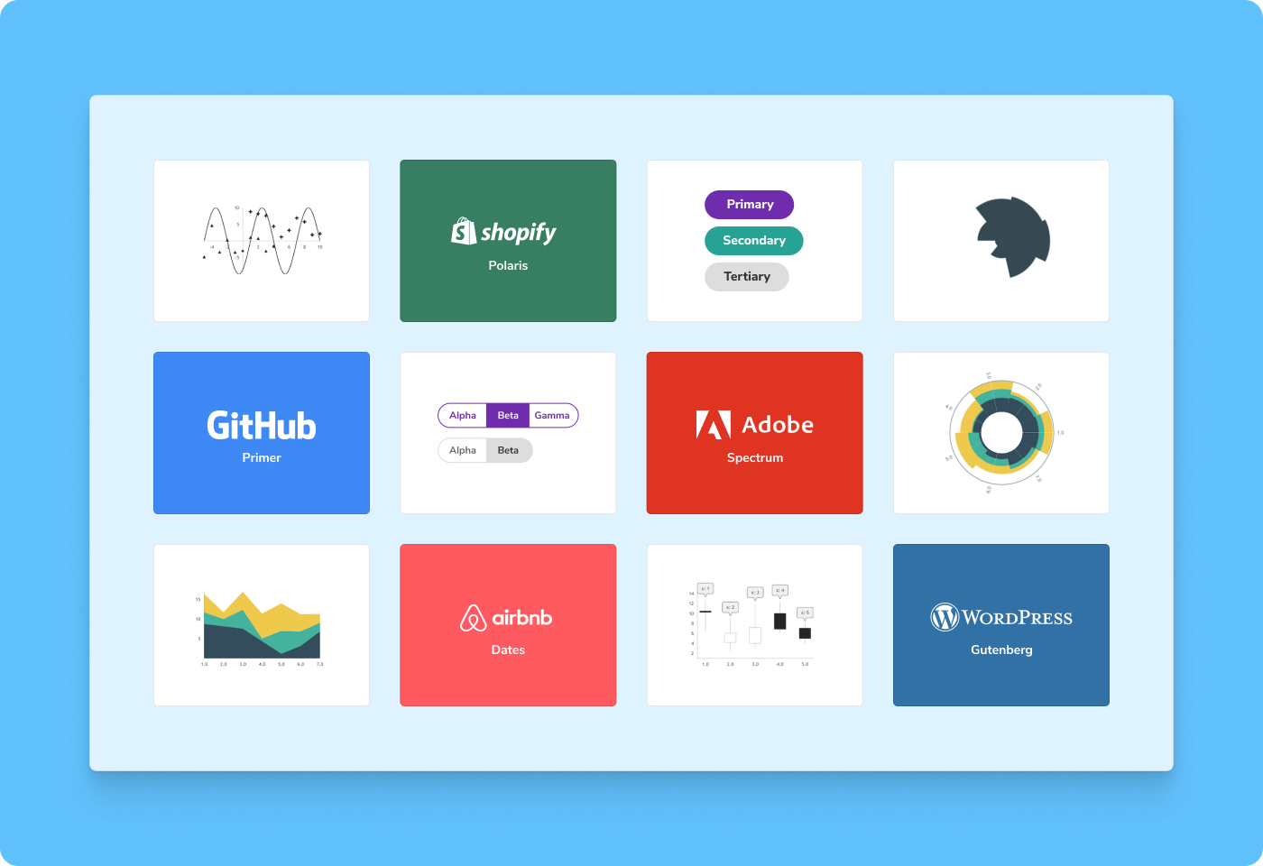 Get a visual overview of popular component libraries, design systems, and apps. Browse by tag to see all the components using a given technology like React, Vue, Emotion, and Sass. Or skim a hand-picked set of novel components chosen by our team.