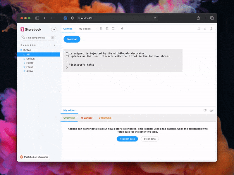 Storybookโs addon API provides utilities and helpers to build your addon fast. Whatโs more, you can share those addons with thousands of developers via the addon catalog.