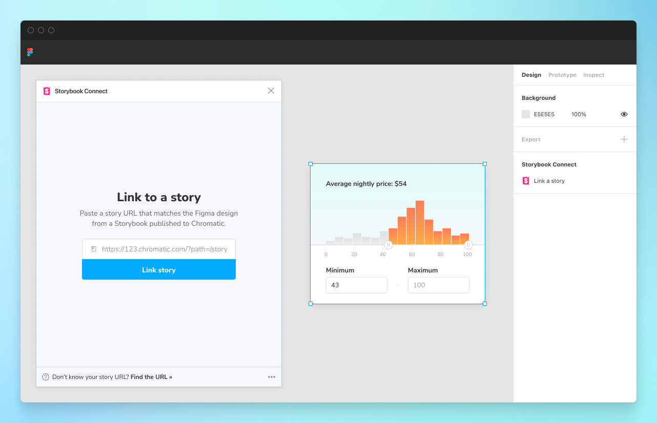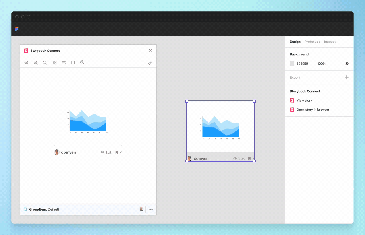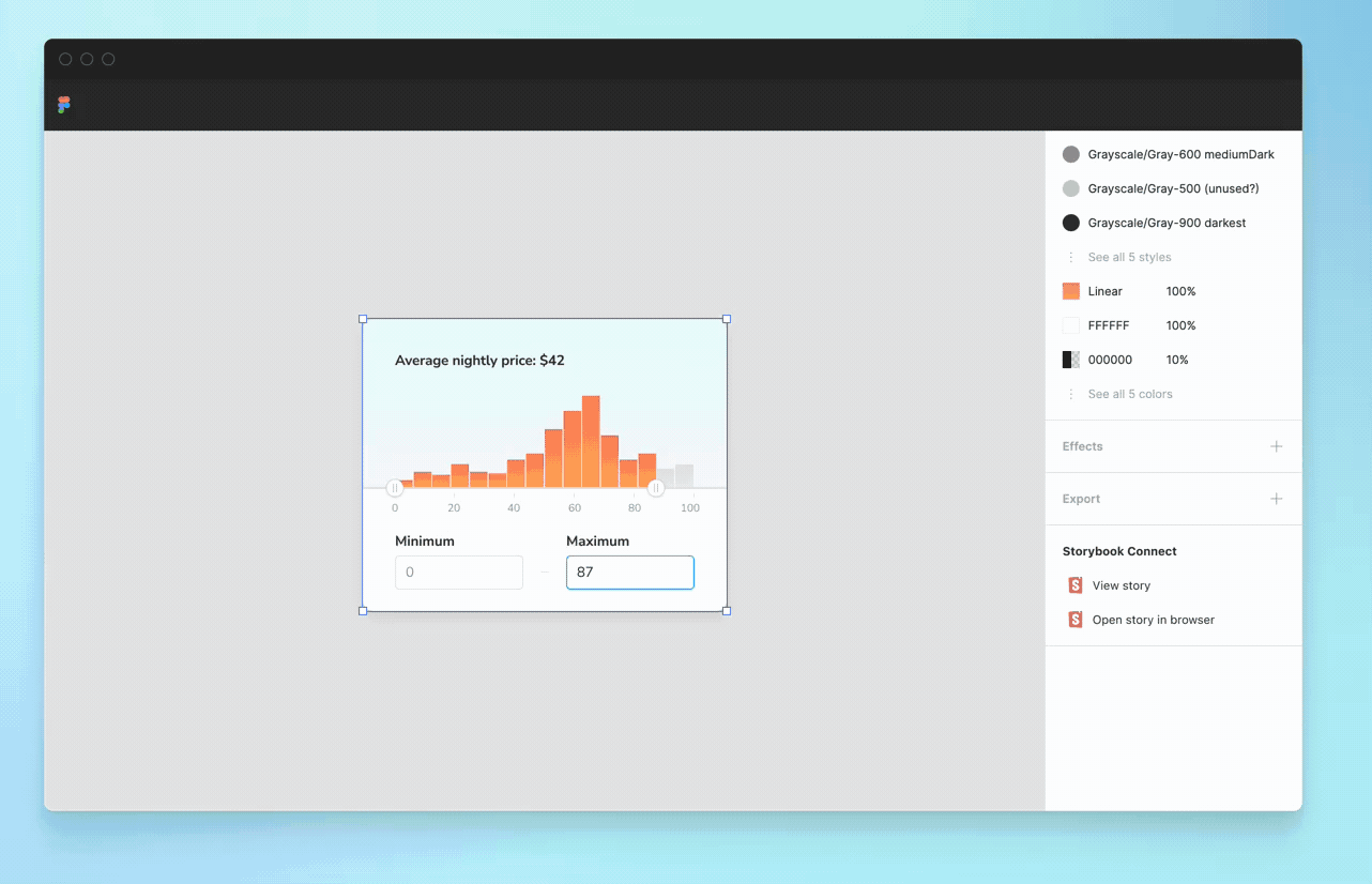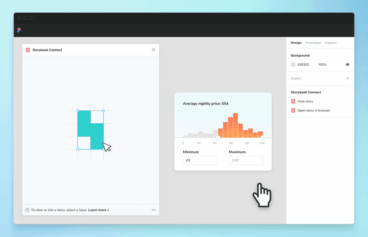 Open the Storybook Connect window to quickly reference the real component implementation that you’ve built in Storybook. This helps designers confirm the nuances of how a component is expected to behave before committing to using it. During handoff, developers can quickly reference an implementation without tabbing between windows.
