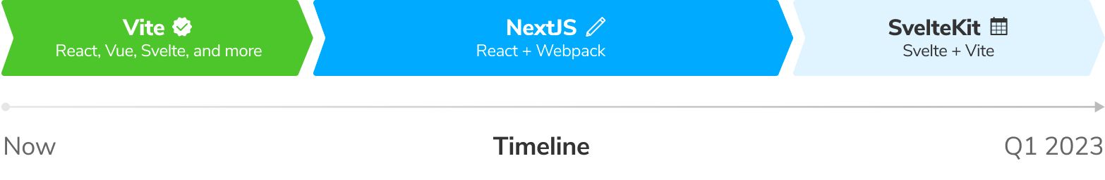 Each framework mirrors your app’s Vite configuration so that no further configuration is required. What’s more, the popular package manager for Vite, pnpm, is supported out of the box. As of 7.0, Webpack is no longer a dependency for Vite users. For a full description of the Vite frameworks, see our announcement for First-class Vite support.