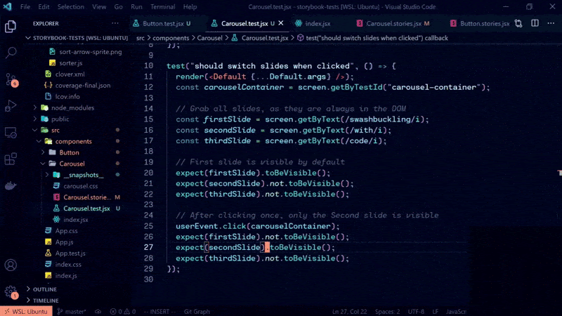 Adobe aims to take this one step further by writing component use-cases as stories. Then reuse them in Jest to run interaction tests. This is enabled by Component Story Formatโa portable format based on JavaScript ES6 modules. Therefore, allowing you to use the same story during development and then again in visual, composition, and interaction testing.