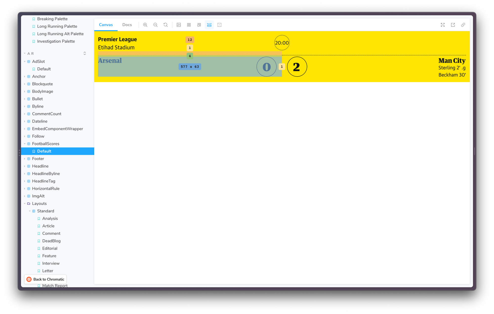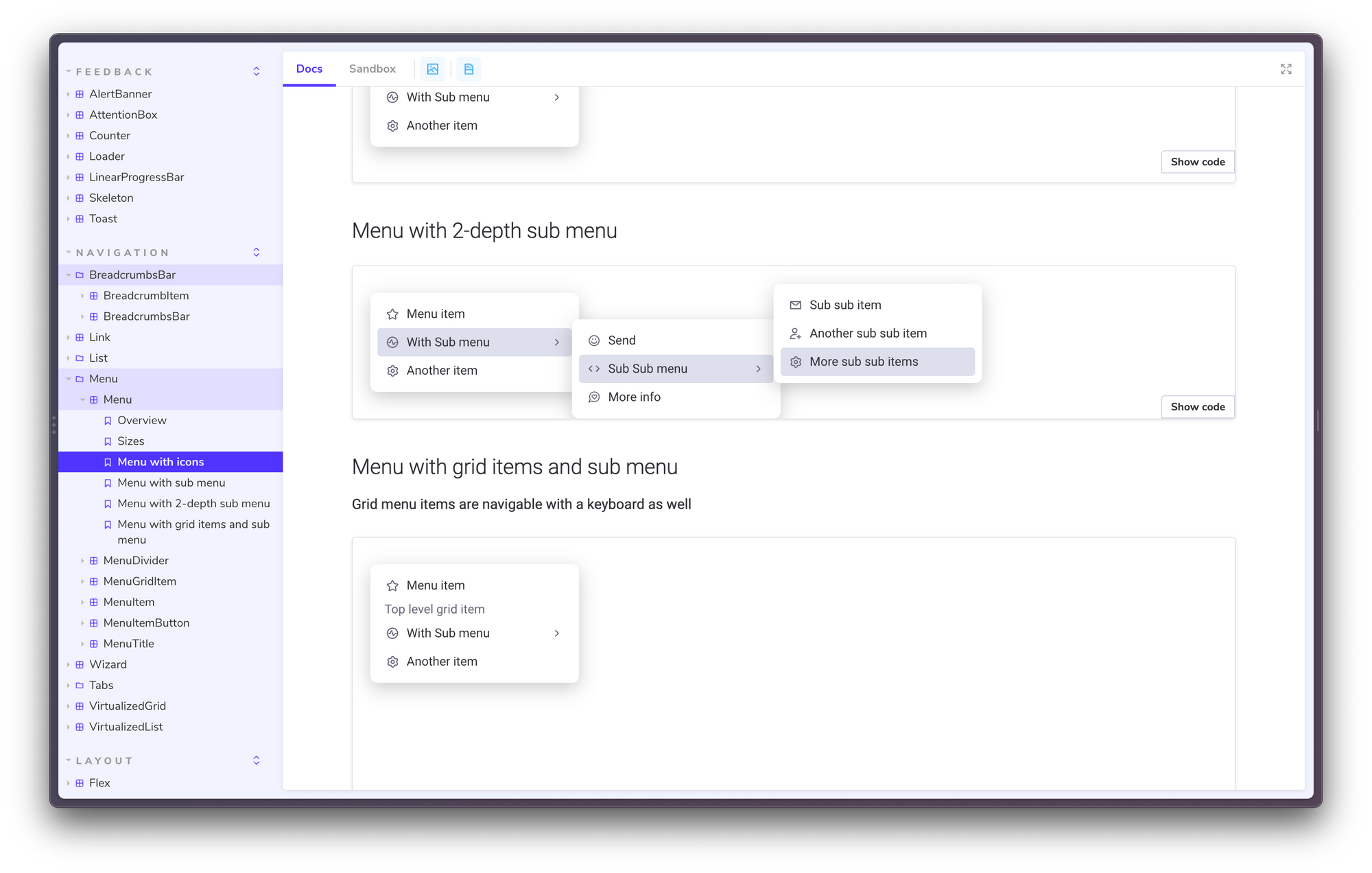 Every component has countless variations based on app state, theming, responsive behavior, device features, internationalization, etc. Developers write stories to cover all these use cases. This enables them to view any variant instantly then verify its look and feel.