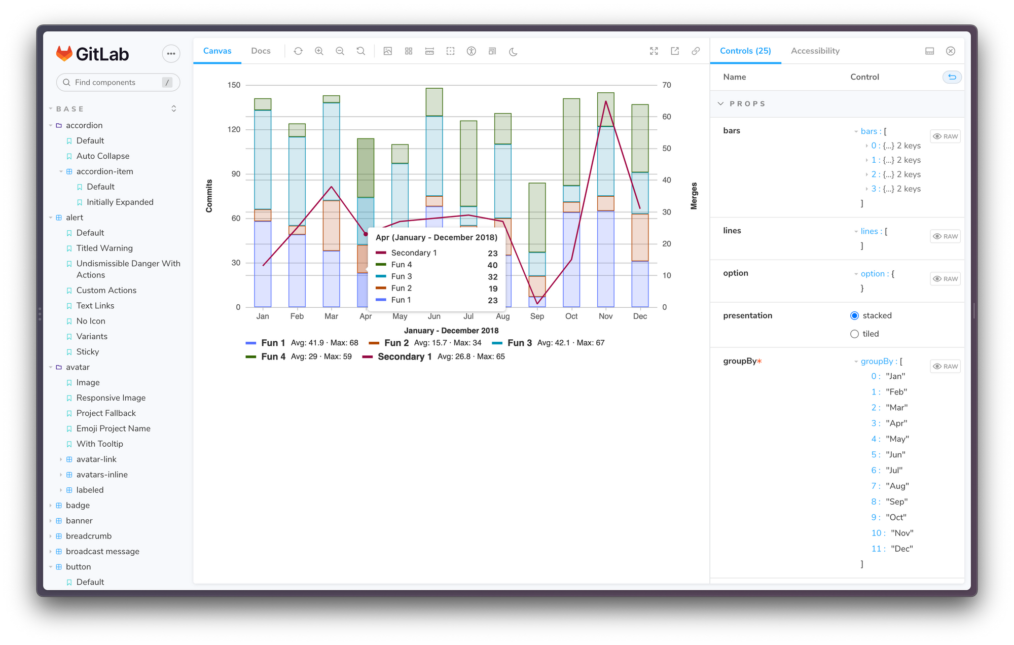 Presentational components like Avatar, Button, and Tooltip receive inputs exclusively via props and have no internal state. This makes it straightforward to isolate and write stories for them. However, components higher up in the application tree are trickier to build in isolation with Storybook.