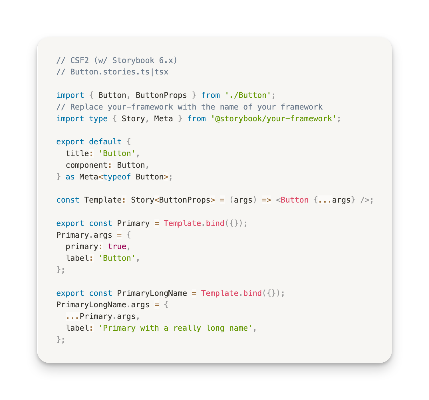 However, this new syntax works for React, Vue, Svelte, Angular, and Web Components! Therefore, we're deprecating the React-specific ComponentMeta and ComponentStory utilities in Storybook 7.