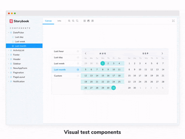 When you build UIs in Storybook you get testing for free. Storybook revolves around the concept of stories, these capture the supported state of your UI components.