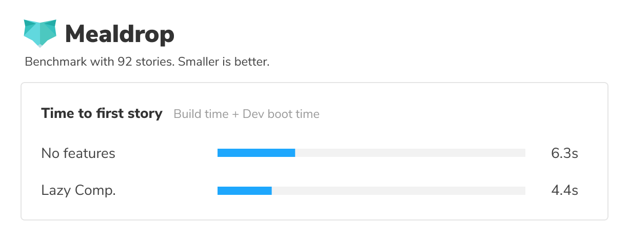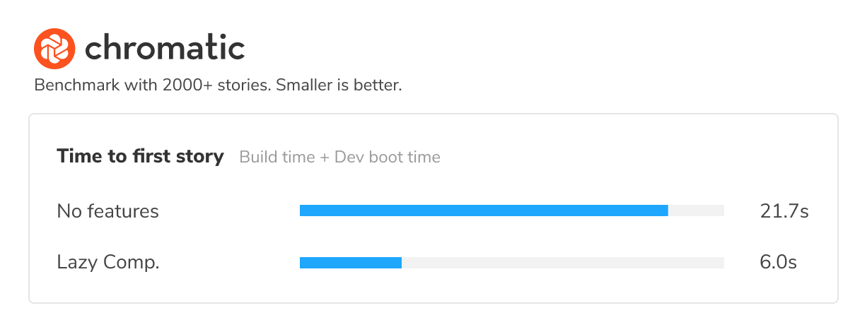 Previously, Storybook packaged all your stories into one big bundle. Storybook 6.4 employs code splitting to create individual bundles for each story and load them asynchronously. The immediate impact was 3x smaller bundle sizes, which meant that published Storybooks loaded up to 4x faster.