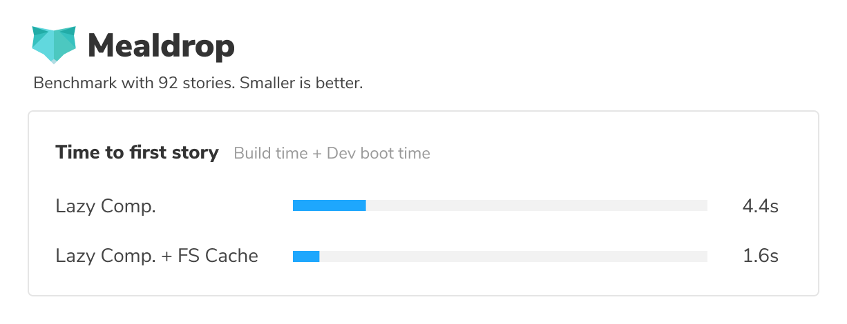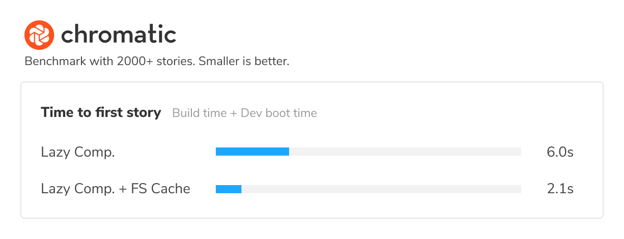 Lazy compilation and file system caching significantly improve your local development experience with Storybook. You'll now spend much less time waiting for Storybook to compile code.