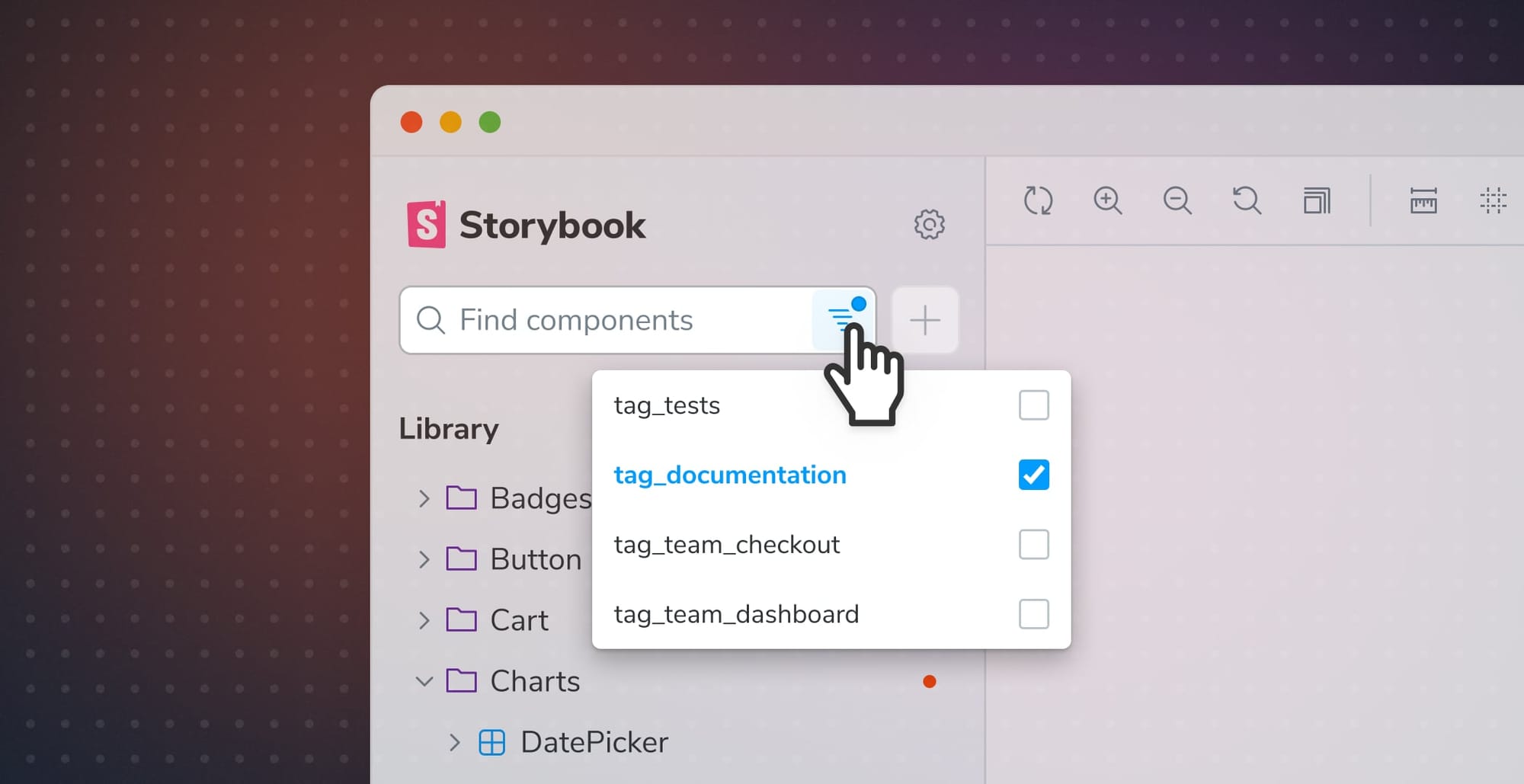 Is your Storybook getting unwieldy with component playgrounds, tests, and documentation examples? Use tags to organize and filter the components and stories in your sidebar.