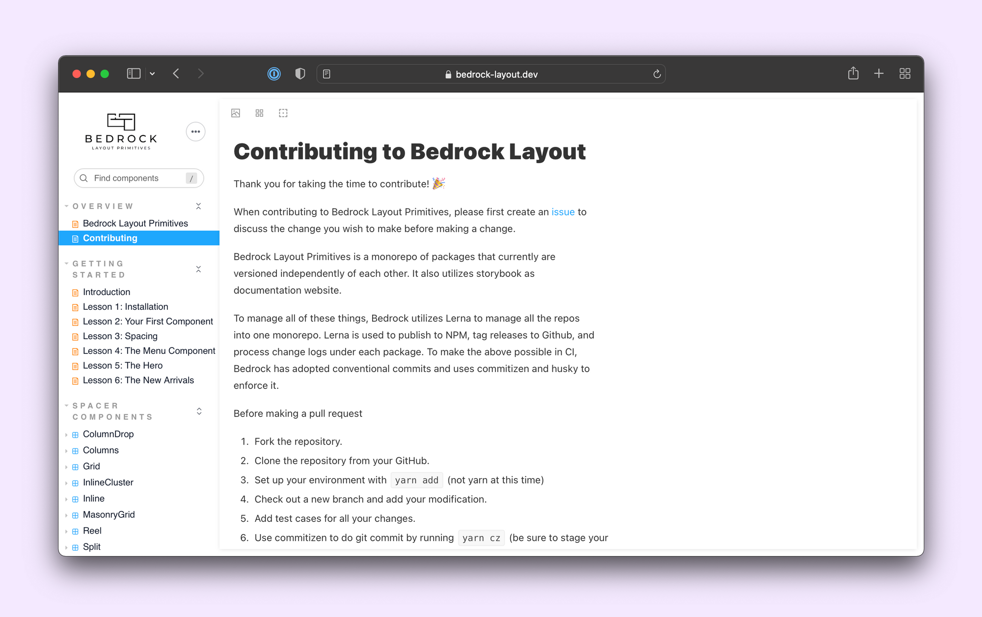 Document how to contribute a feature or bug fix. Contribution pages include instructions for environment setup, how to submit code, and run tests. This is especially important for libraries and design systems that rely on community support.