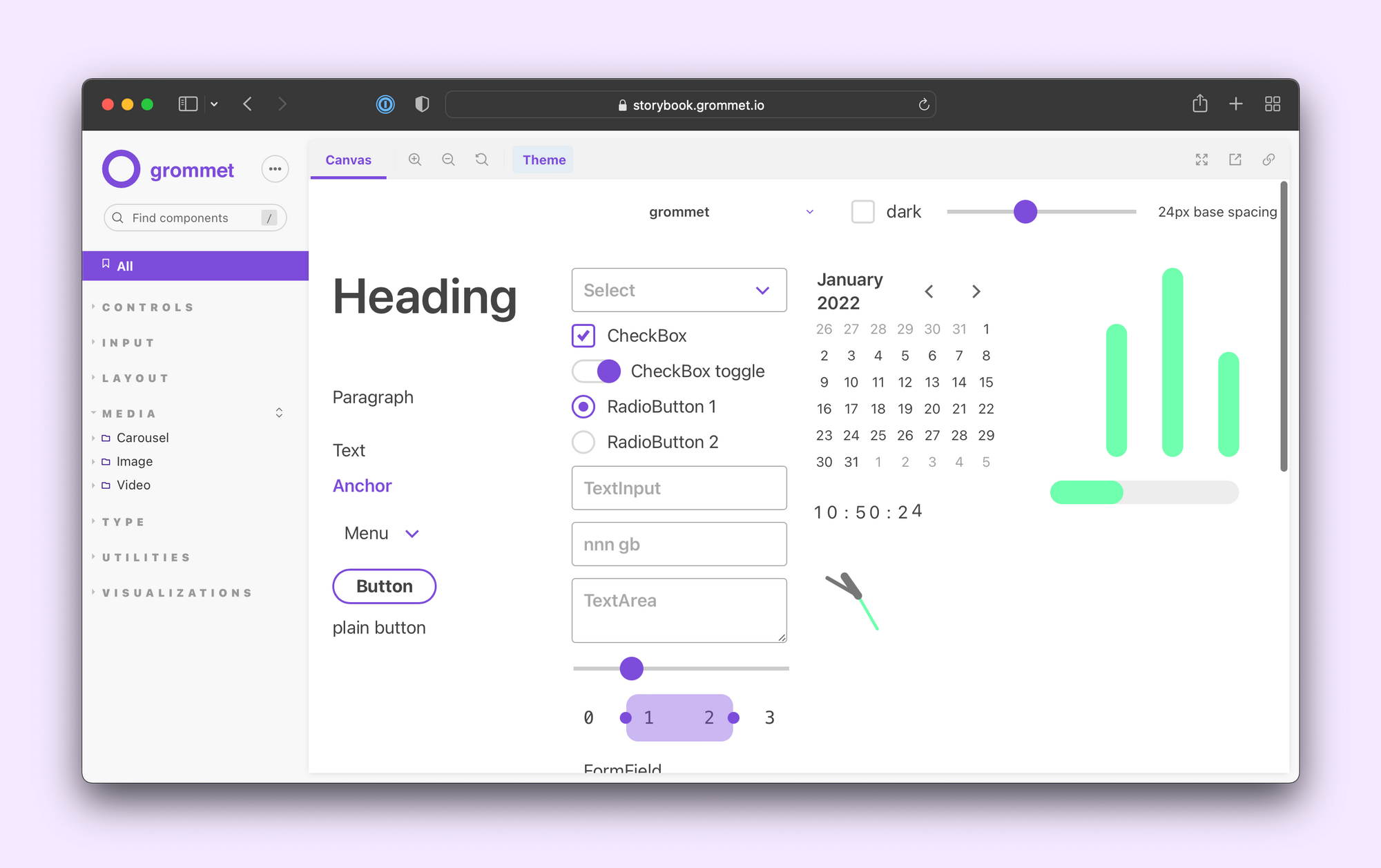 The upcoming Component Encyclopedia has a more exhaustive showcase that you can browse, reference, and learn from. Sign up to the Storybook mailing list below to get Component Encyclopedia updates and early access. Or submit the URL of your own Storybook here.