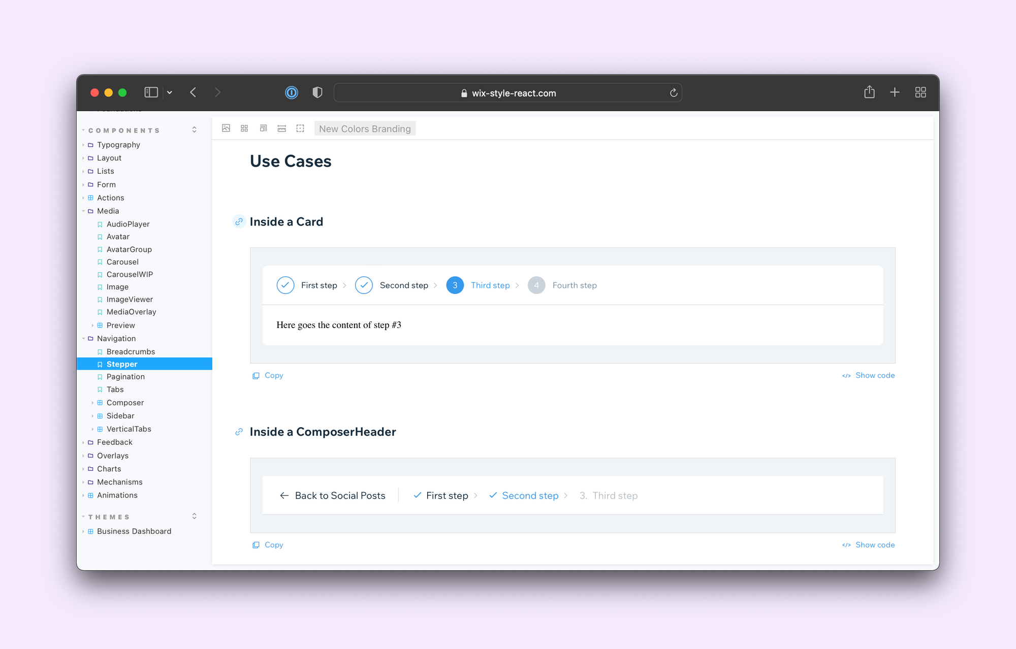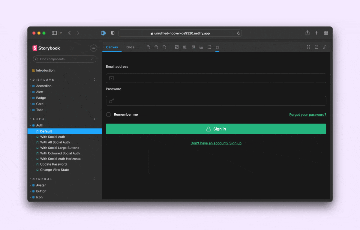 When you publish your Storybook, these stories showcase component features using rendered code that users can interact with instead of static images.