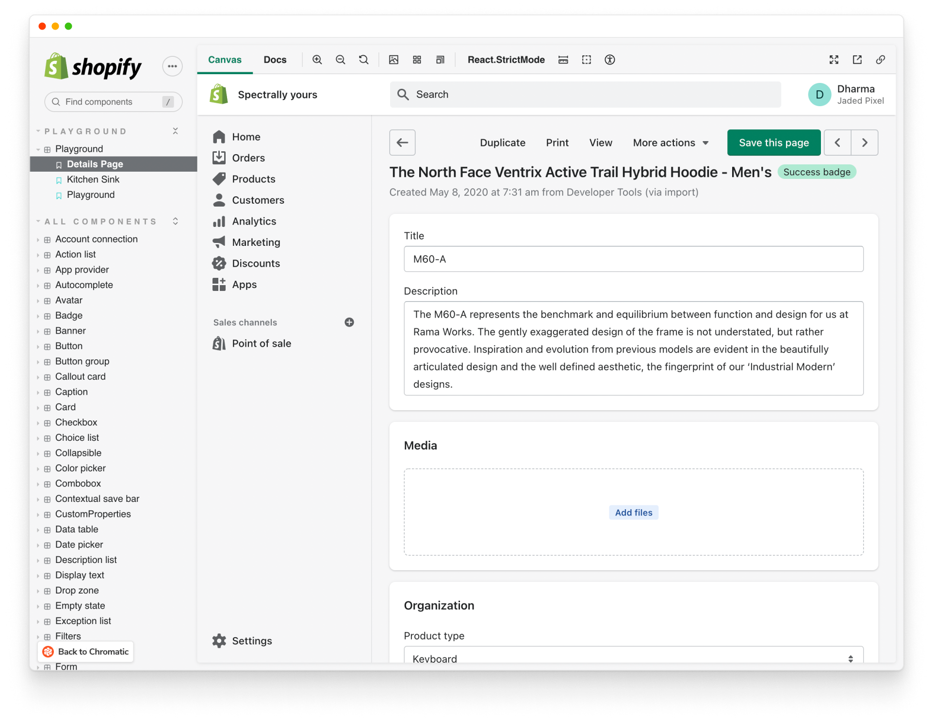 Every piece of UI is now a component. The superpower of components is that you don't need to spin up the whole app just to see how they render. You can render a specific variation in isolation by passing in props, mocking data, or faking events.